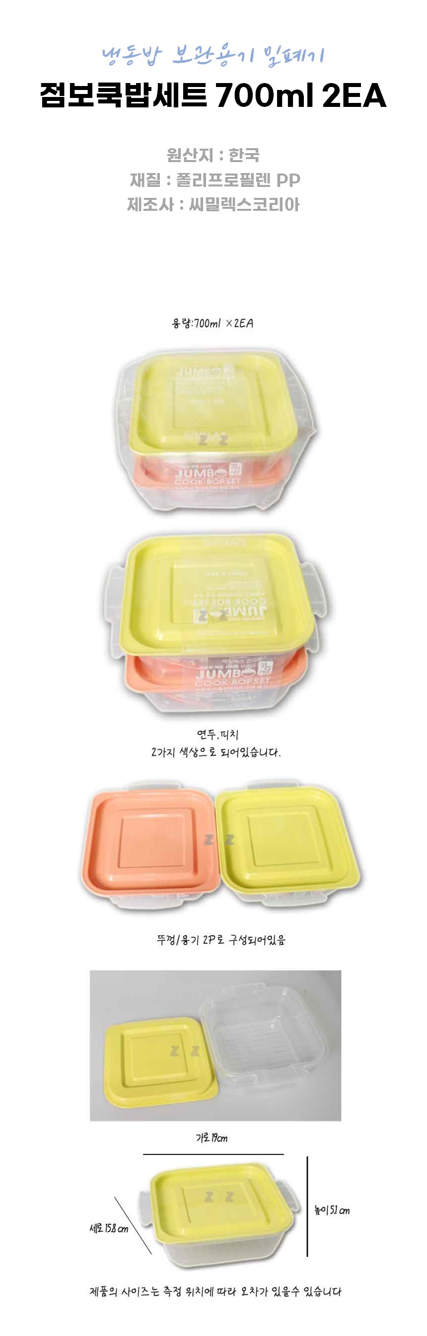| 품명 및 모델명 | 점보쿡밥세트 700ml 2EA 냉동밥 보관용기 / 상세정보별도표시 |