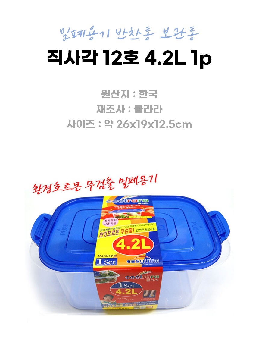 | 품명 및 모델명 | 직사각 12호 4.2L 1p 밀폐용기 반찬통 / 상세정보별도표시 |