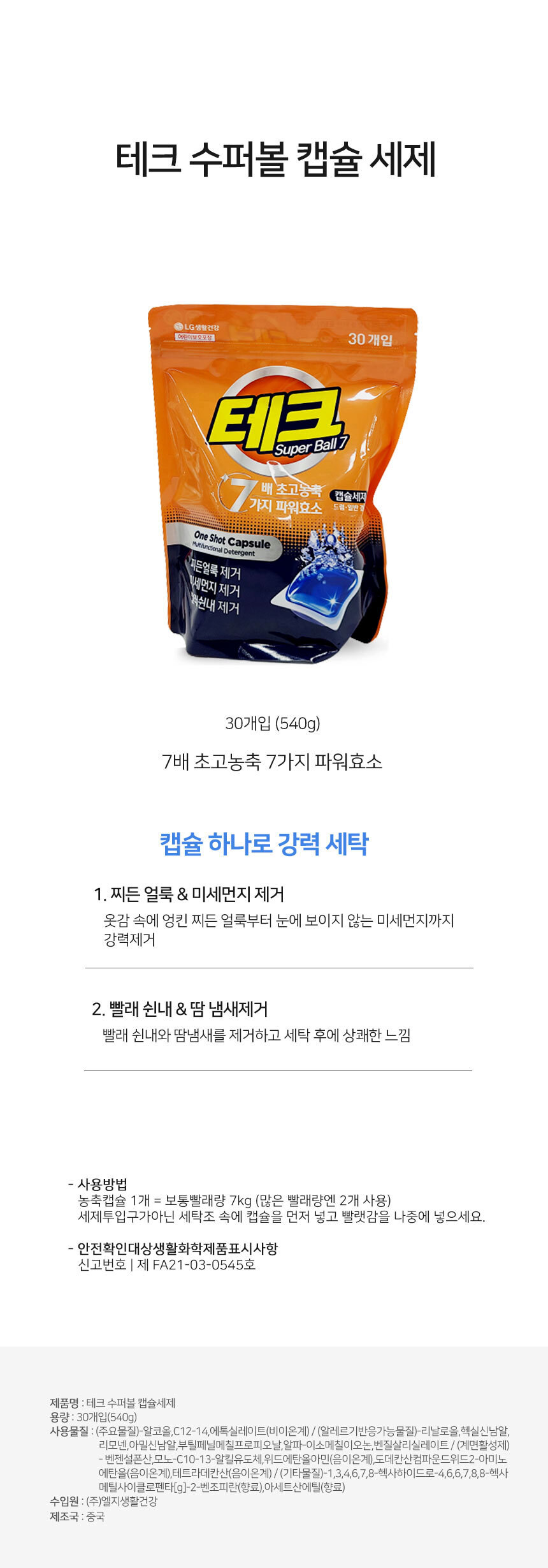 | 품명 및 모델명 | 찌든때 얼룩 냄세제거 빨래세제 캡슐세제 세탁세제 / 상세정보별도표시 |