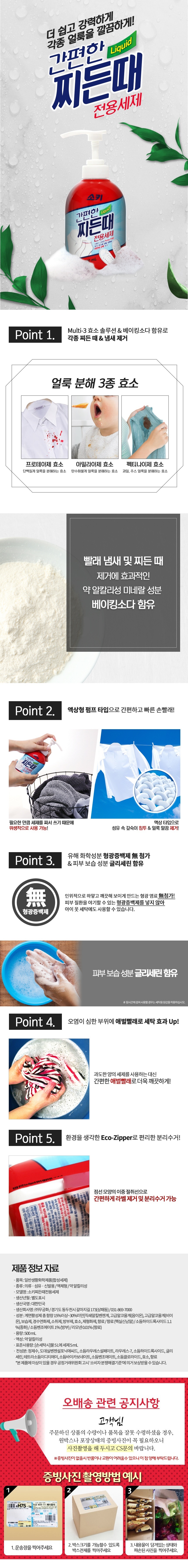 | 품명 및 모델명 | 찌든때 전용 액상형 손빨래세제 세탁세제 500ml / 상세정보별도표시 |
