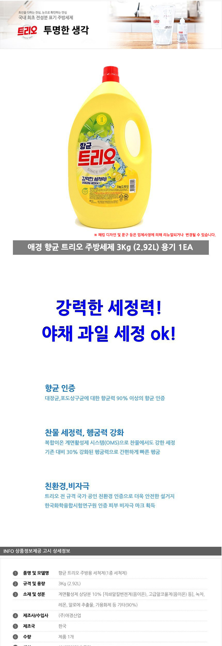 | 품명 및 모델명 | 트리오 주방세제 3kg / 상세정보별도표시 |