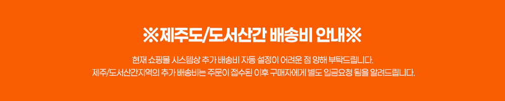 위의 배송기간은 표준 배송 기간이며 재고의 유무, 배송지역, 택배사 사정에 따라 배송기간이 추가 소요될 수 있습니다.