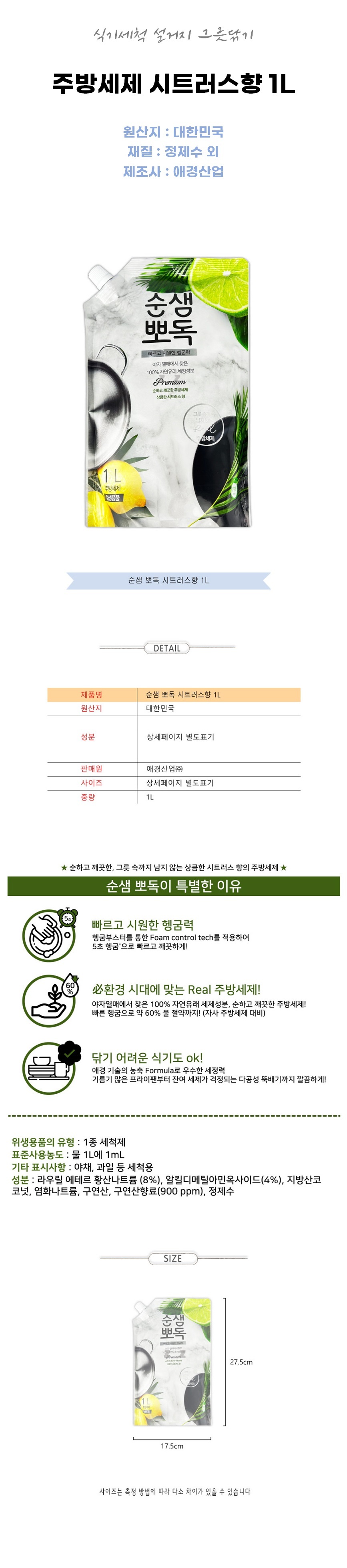| 품명 및 모델명 | 주방세제 시트러스향 1L 식기세척 설거지 그릇닦기 / 상세정보별도표시 |