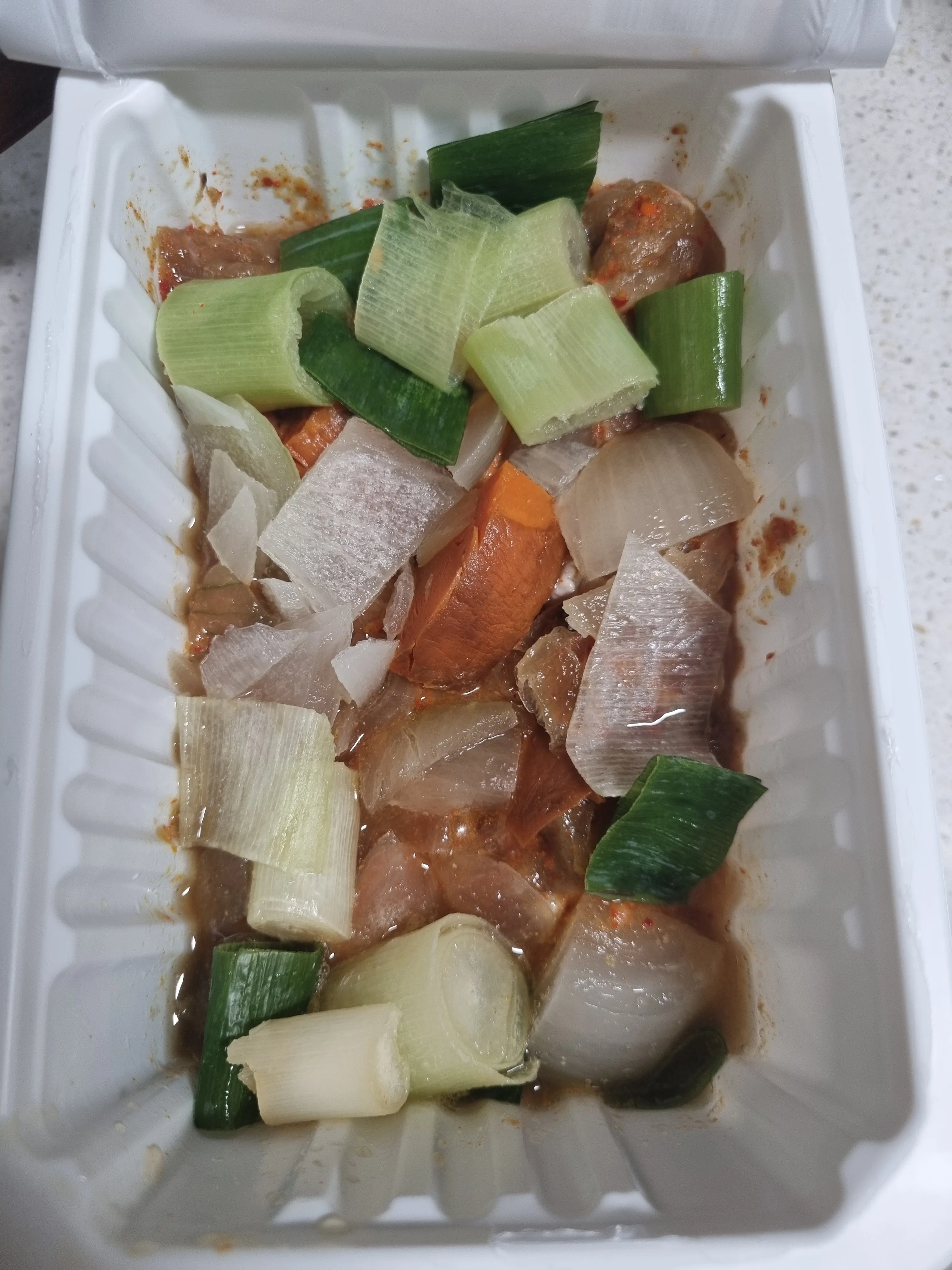 순살이라 끓여서 먹기가 편해요 배추 산과 함께 먹었습니다.