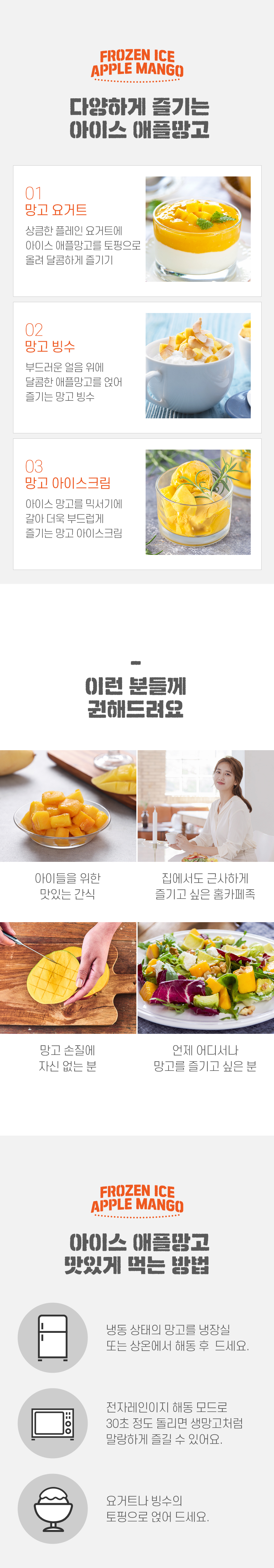 | 포장단위별 내용물의 용량(중량),수량,크기 | 애플망고 1kg x 5개, 중량기준으로 크기를 기재하기 어렵습니다. |