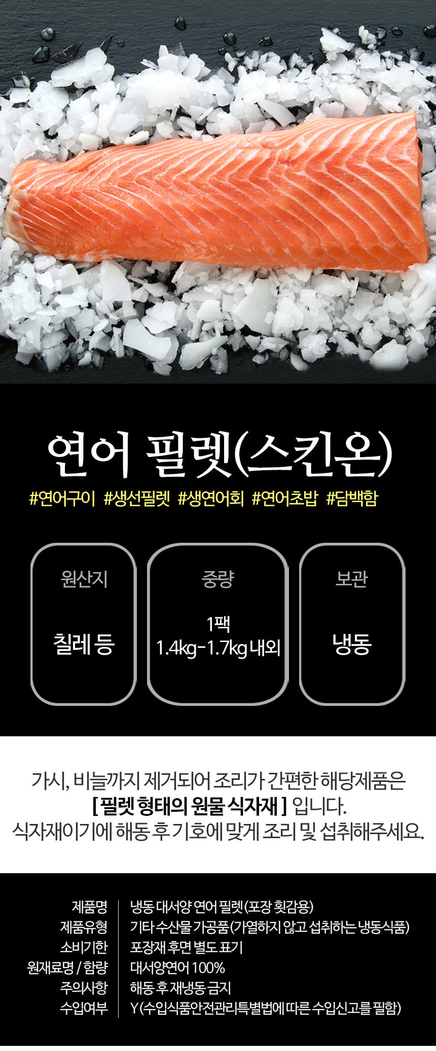 | 상품구성 | 연어필렛 1.2kg내외 1팩 |