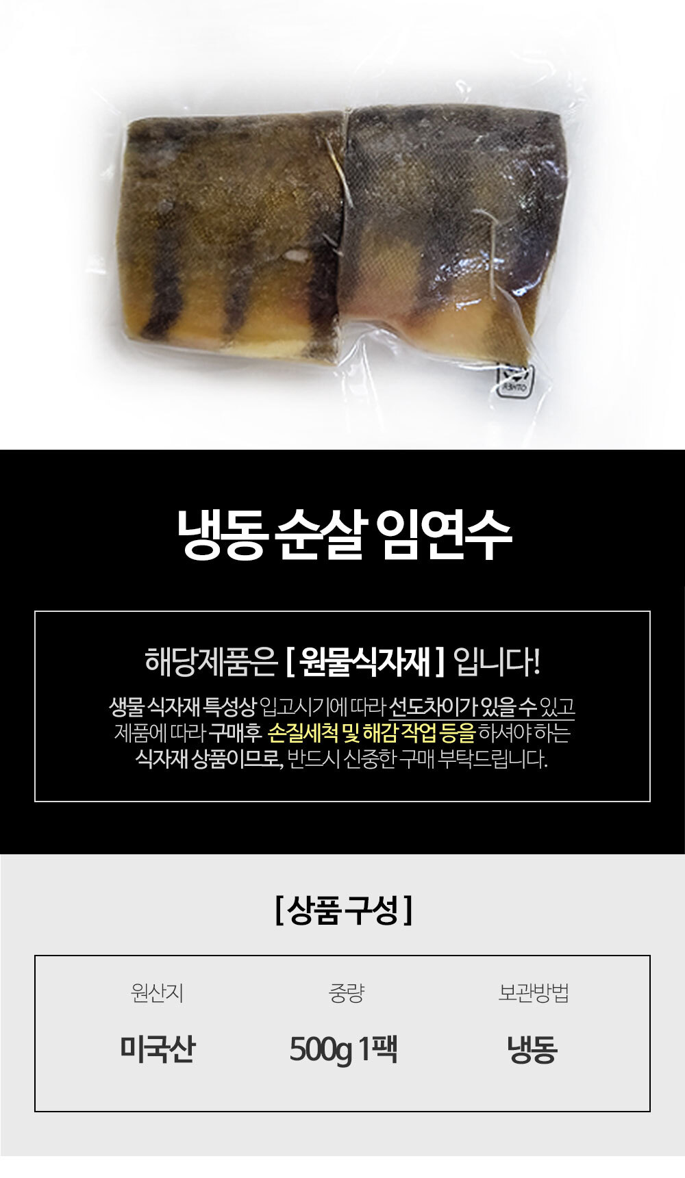 | 상품구성 | 냉동임연수 |