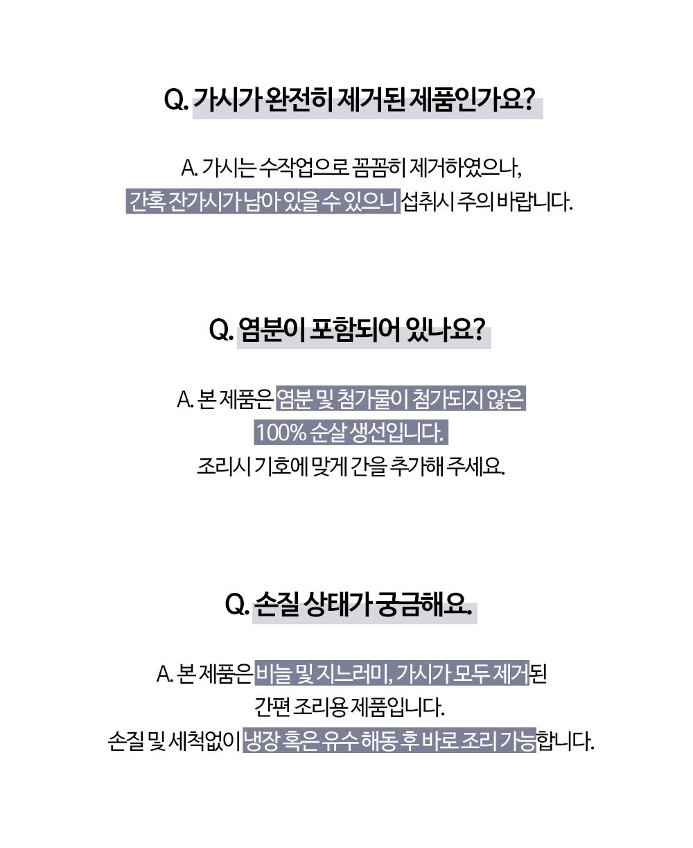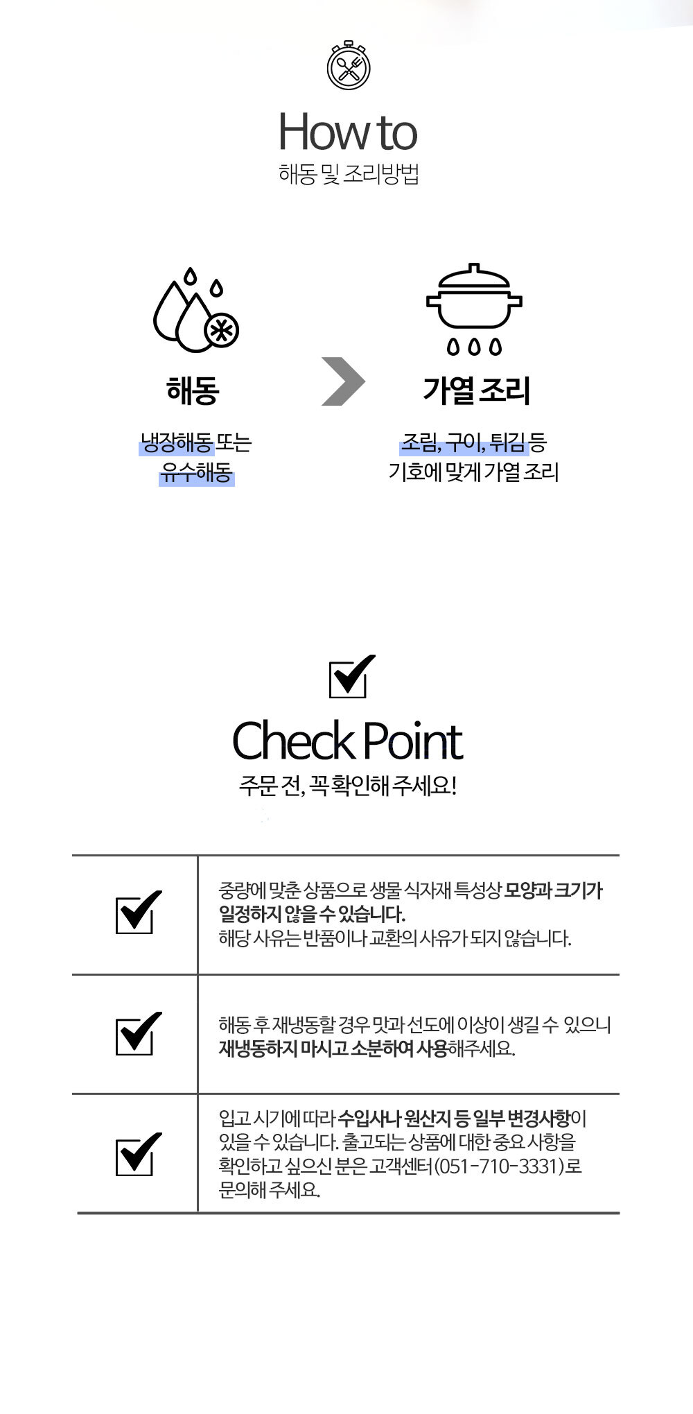 | 식품 등의 표시,광고에 관한 법뮬에 따른 소비자 안전을 위한 주의사항 | 해동 후 재냉동 금지 |