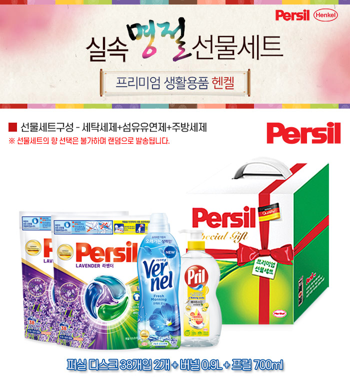 | 품명 및 모델명 | 선물세트 퍼실 디스크 38개입 2팩+버넬 0.9L+프릴 700ml |