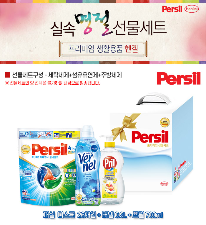 | 품명 및 모델명 | 선물세트 퍼실 디스크 파우치 1팩(26개입)+버넬 0.9L+프릴 700ml |