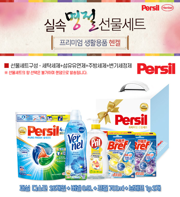 | 품명 및 모델명 | 선물세트 퍼실 디스크 파우치 1팩(26개입)+버넬 0.9L+프릴 700ml+브레프 1p 2개 |