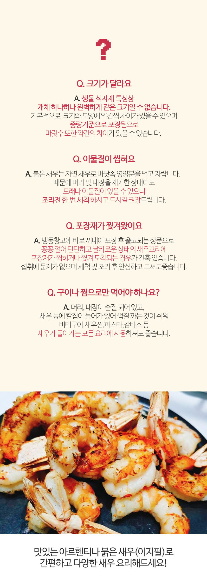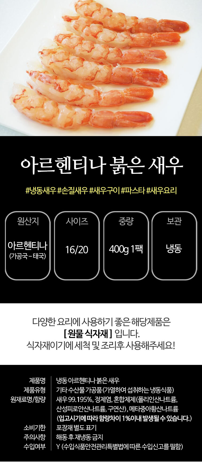 | 상품구성 | 냉동 아르헨티나 붉은새우(이지필) 16/20 400g 1팩 |