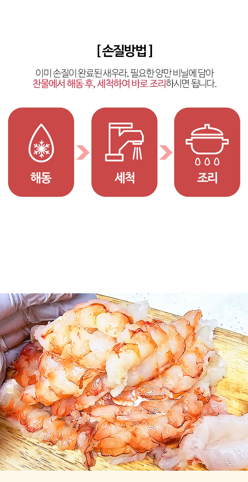 | 식품 등의 표시,광고에 관한 법뮬에 따른 소비자 안전을 위한 주의사항 | 이미 냉동된 바 있으니 해동 후 재냉동시키지 마시기 바랍니다. |