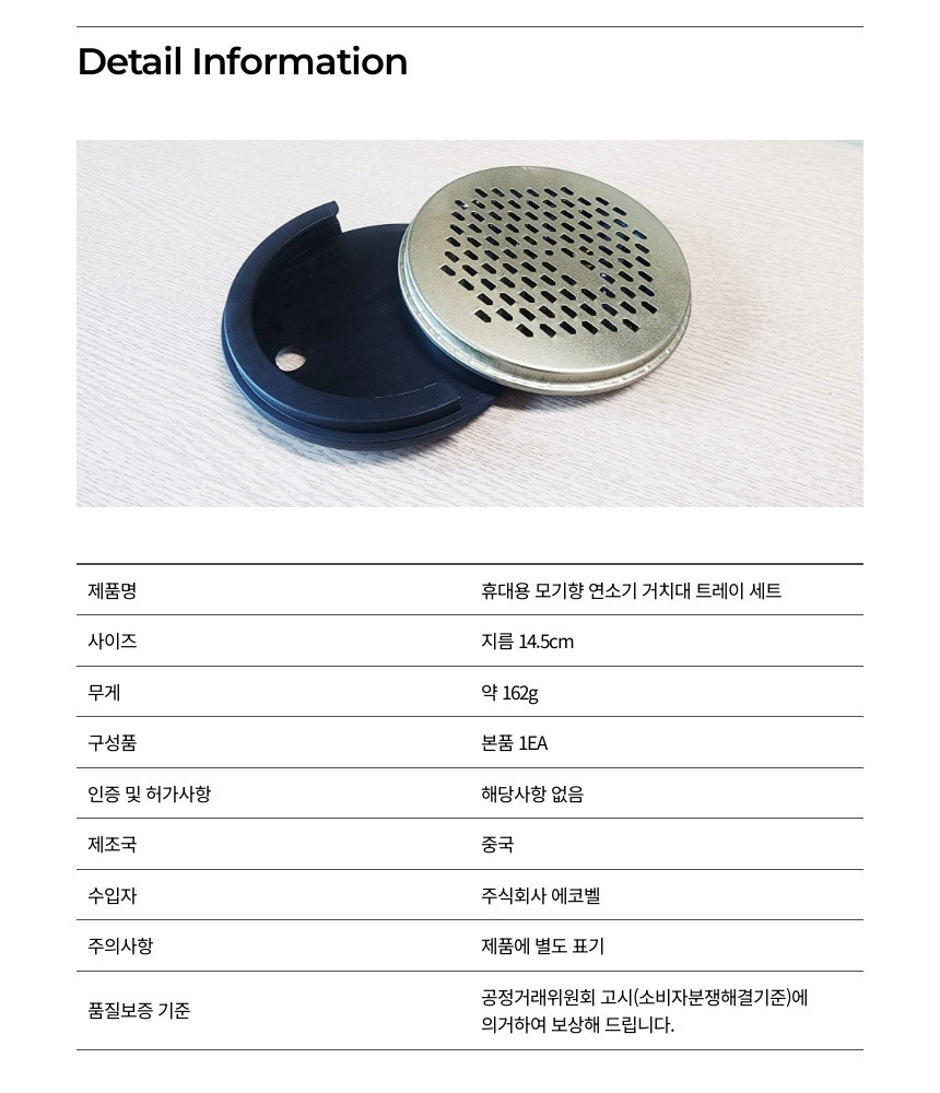 | 품명 및 모델명 | 휴대용 모기향 연소기 거치대 트레이 세트 / ECLISUPE23_E |