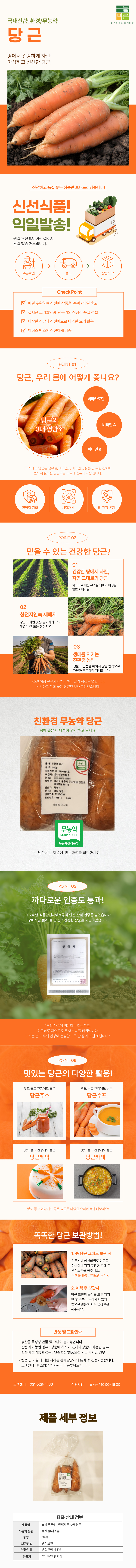 | 상품구성 | 늘바른 국산 친환경 무농약 당근500g/개당100g이상 |