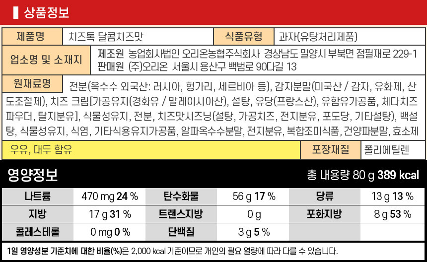 | 유전자변형식품 해당 여부 | 상세페이지 참조 |
