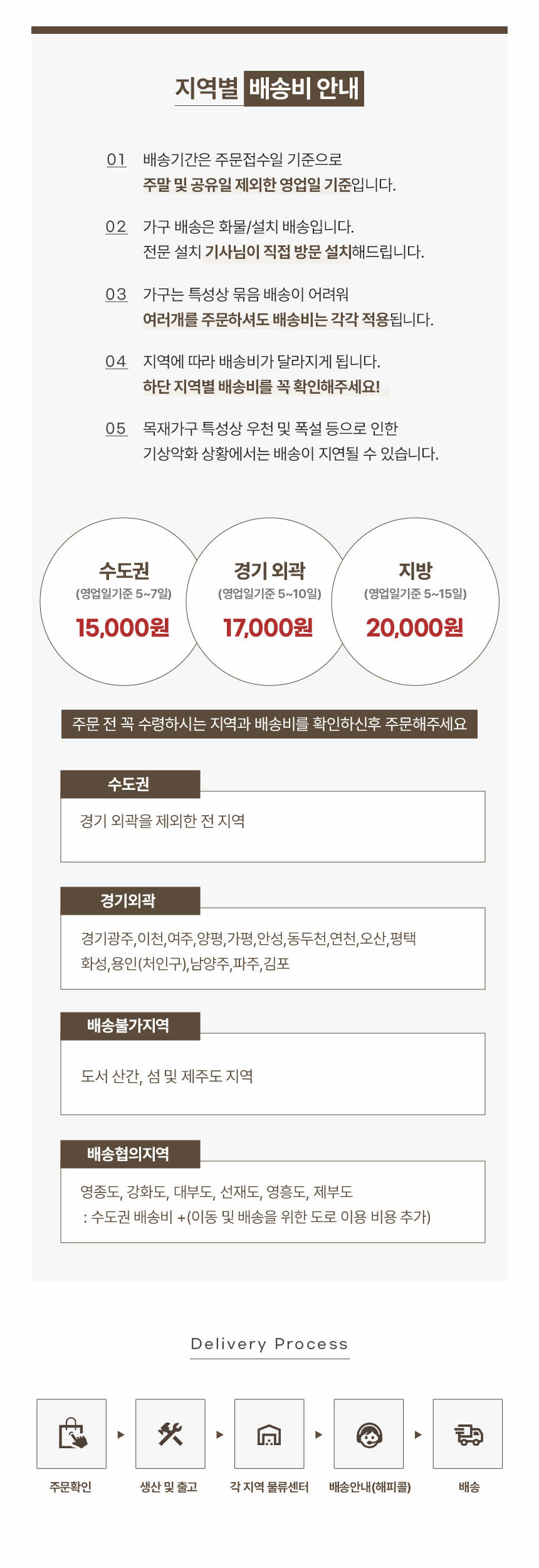 | 오후주문 | 배송지시 | 제품수령 | |||||