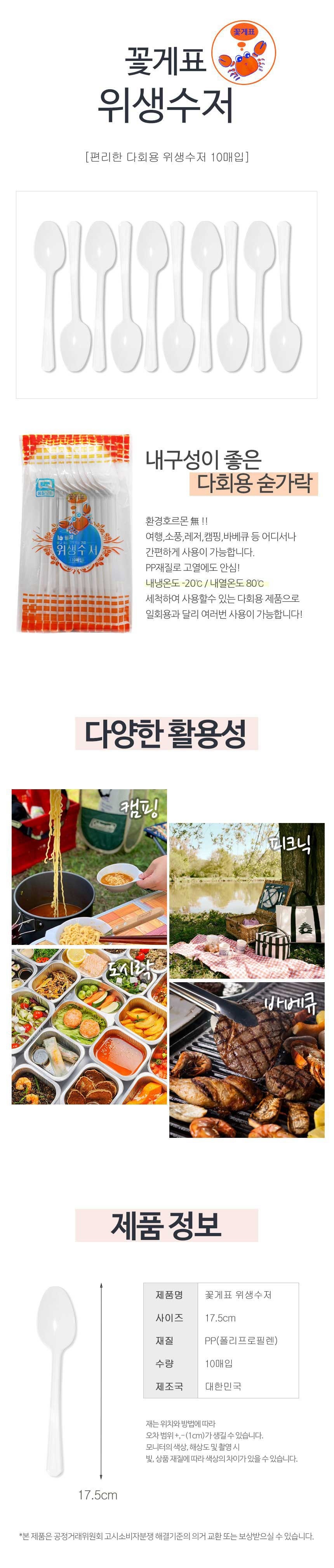 | 품명 및 모델명 | 위생 일회용 숟가락 10P 배달용 다회용수저 / 상세정보별도표시 |