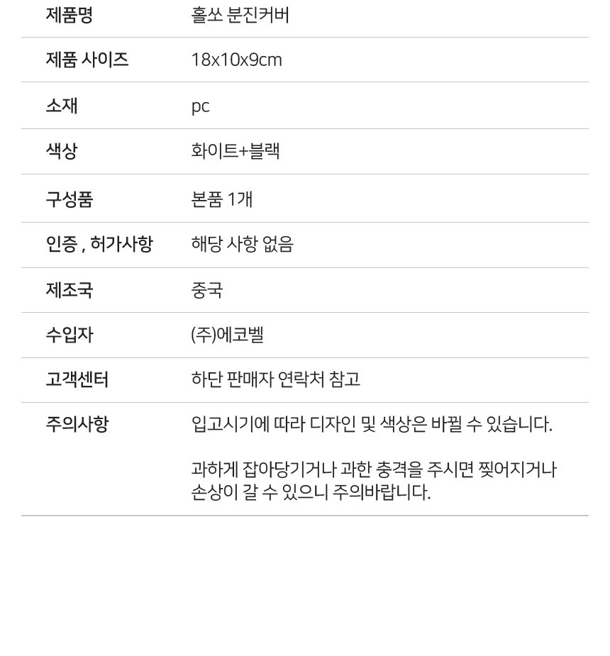 | 제조자/수입자 | 주식회사 에코벨 / 주식회사 에코벨 |
