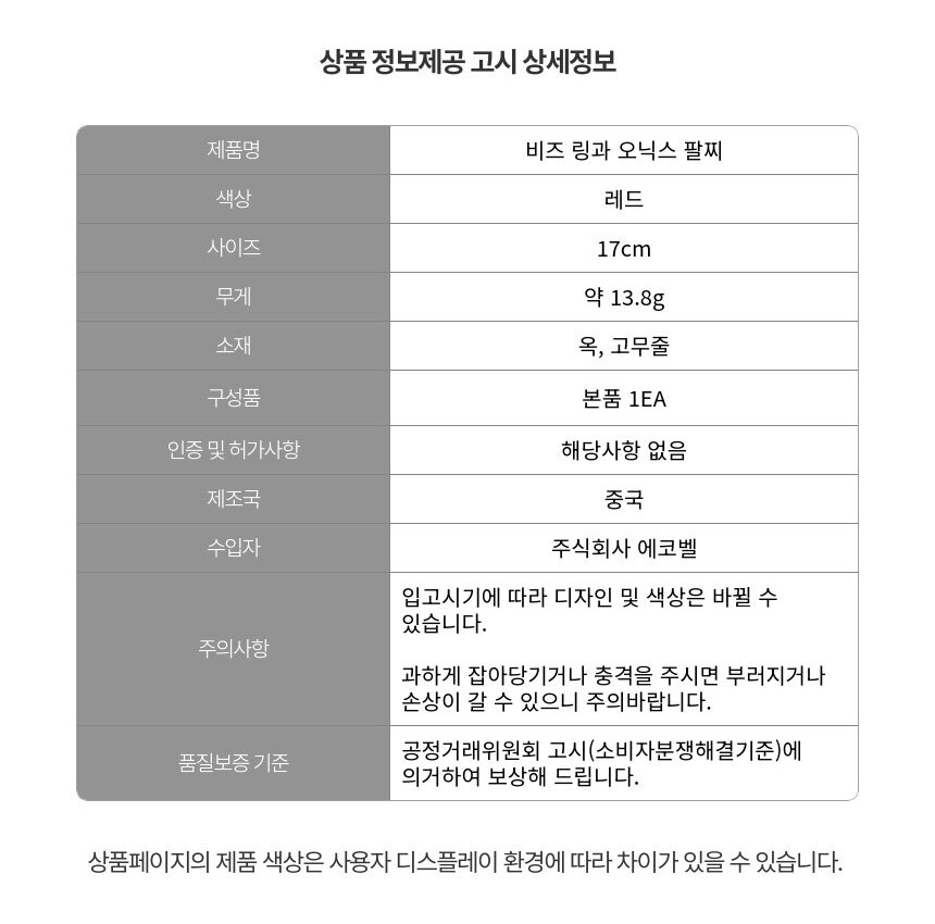 | 품명 및 모델명 | 비즈 링과 오닉스 팔찌레드 / ECFAJEWR09RI_E |