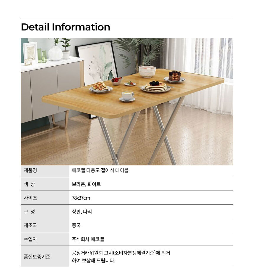 | 품명 및 모델명 | 다용도 접이식 테이블 78x37 / ECDIMOTA02_E |