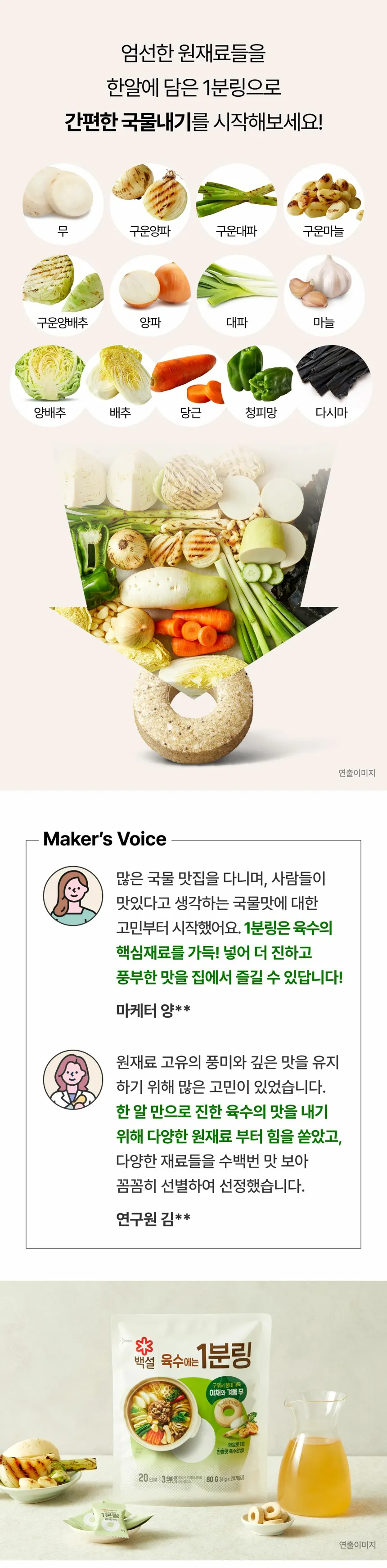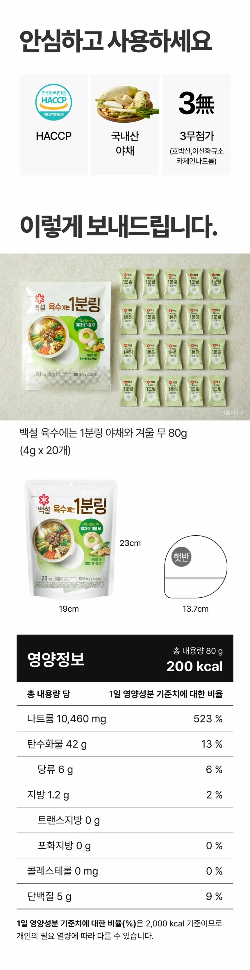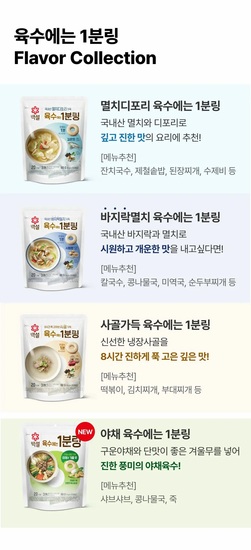백설 육수에는 1분링 4g 20개입 바지락멸치 1개+야채 1개