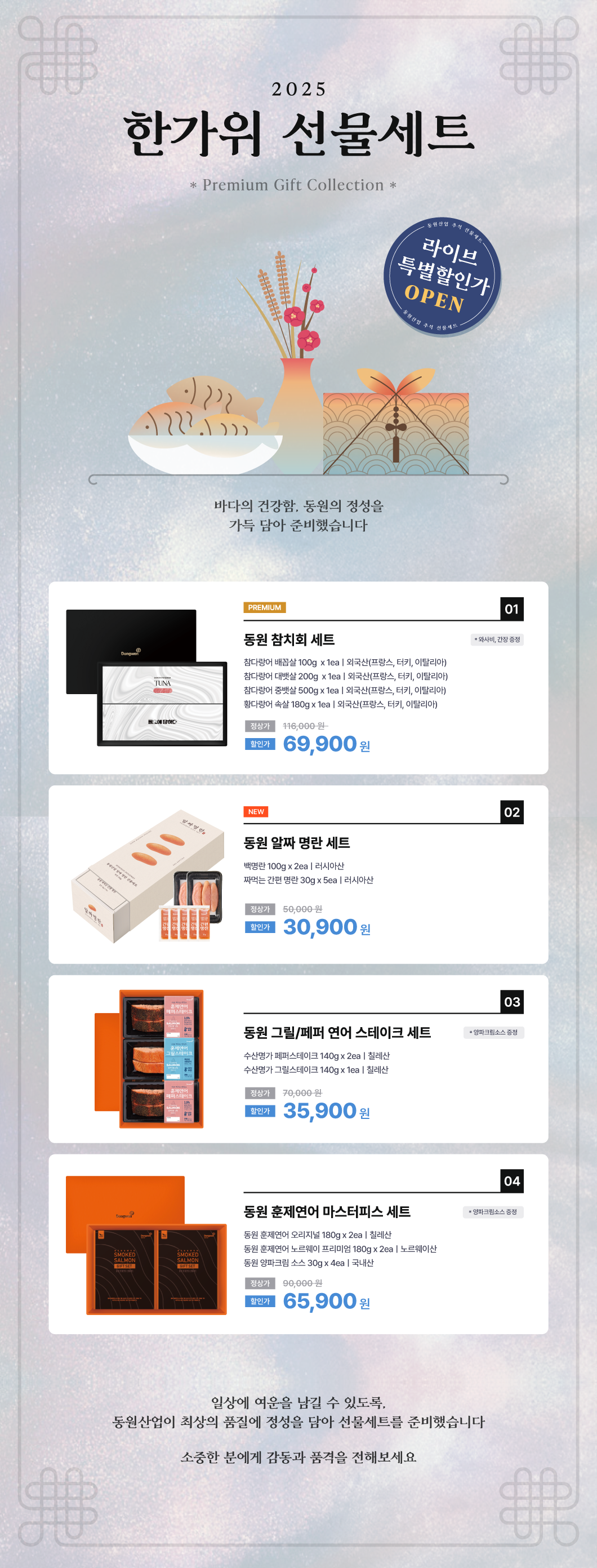 해당 제품은 동원몰 한정으로 출시된 선물세트로, 현재 상세페이지가 완전히 준비되지 않은 점 양해 부탁드립니다.