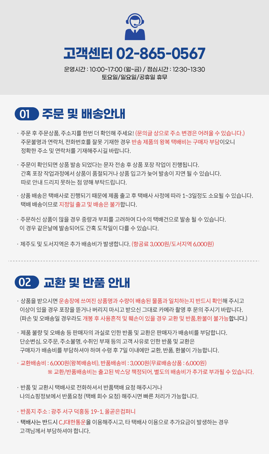 | 소비자상담 관련 전화번호 | 상세페이지 참고 |