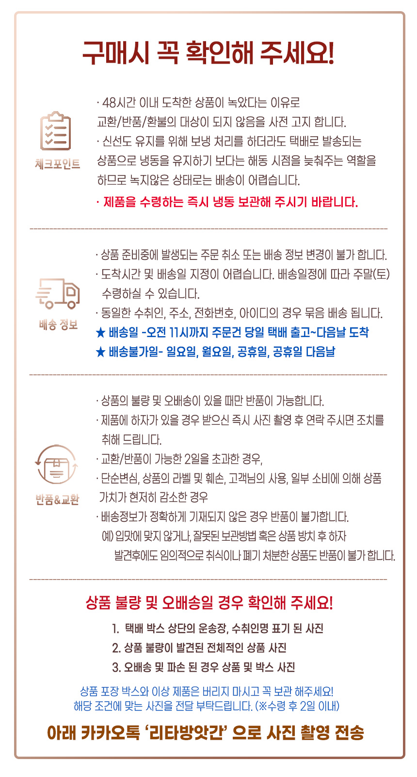 | 오후주문 | 배송지시 | 제품수령 | |||||