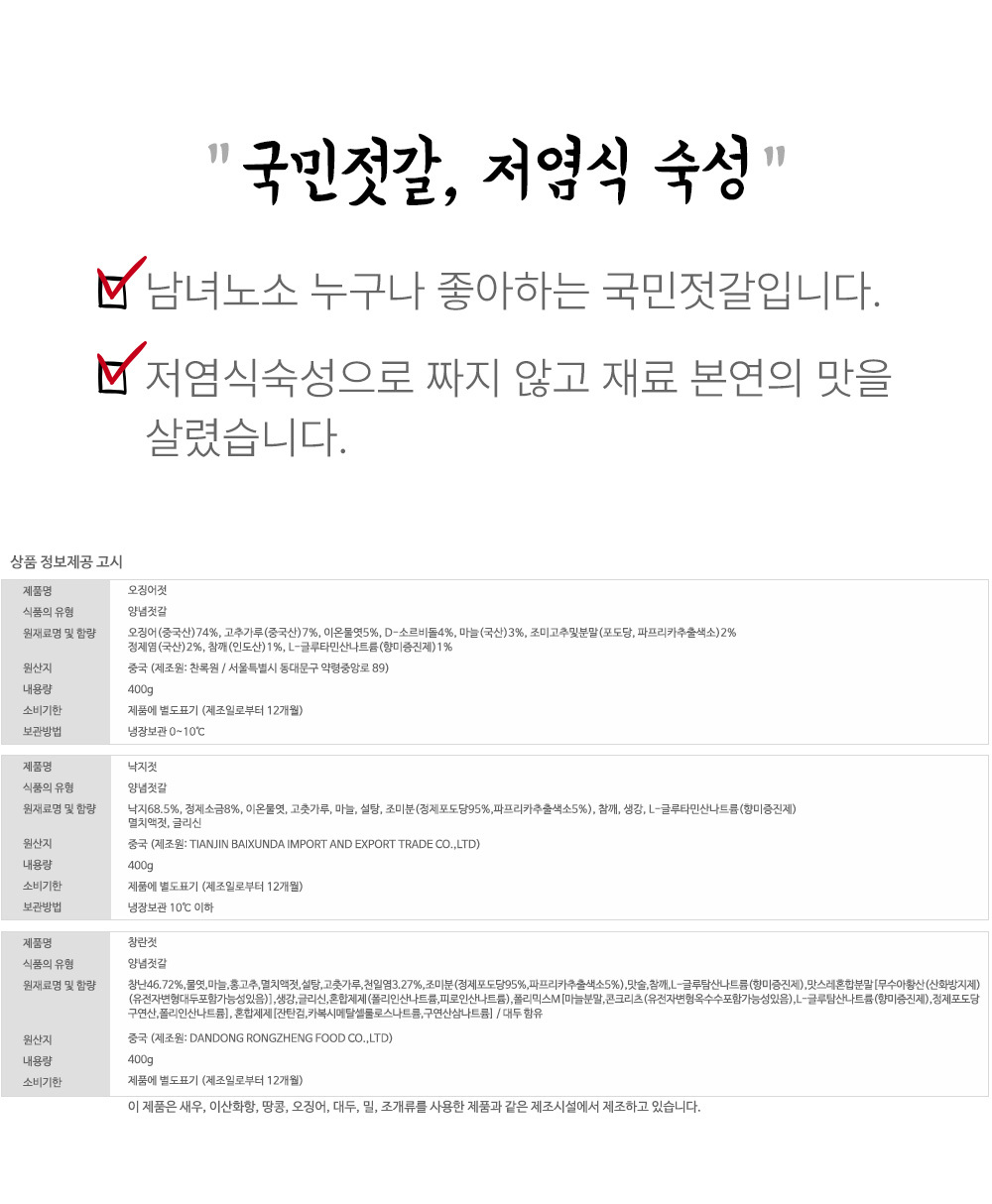| 원재료 및 함량 | 상품상세설명 참고 |