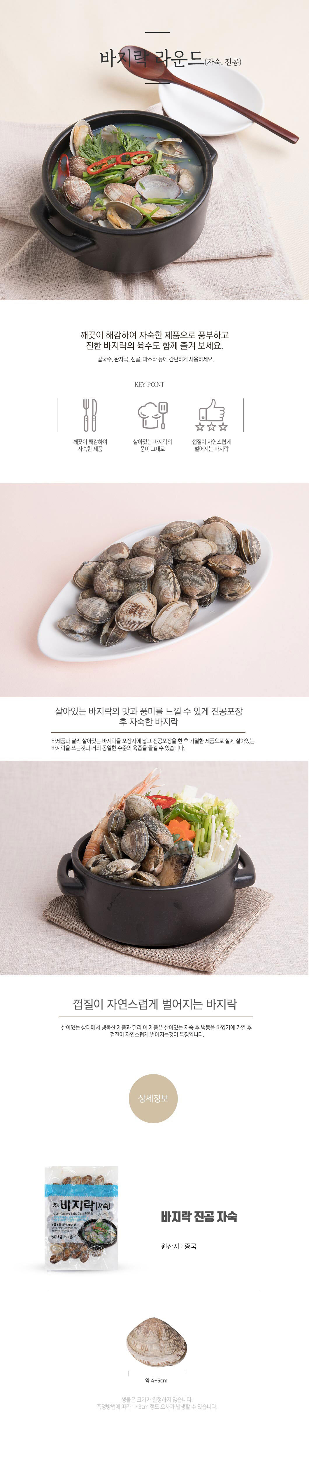 | 상품구성 | 바지락(라운드,자숙,진공) 500g x 3개 |