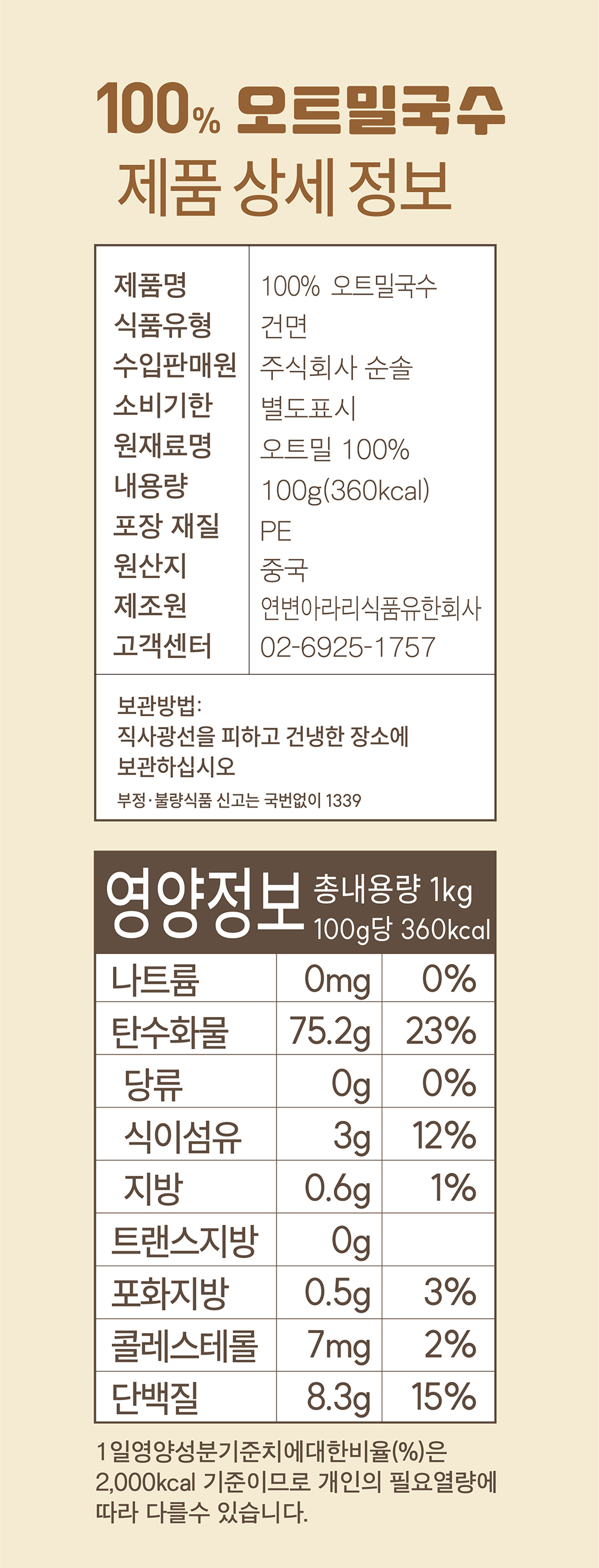 | 품명 | 순솔 100% 오트밀국수 |