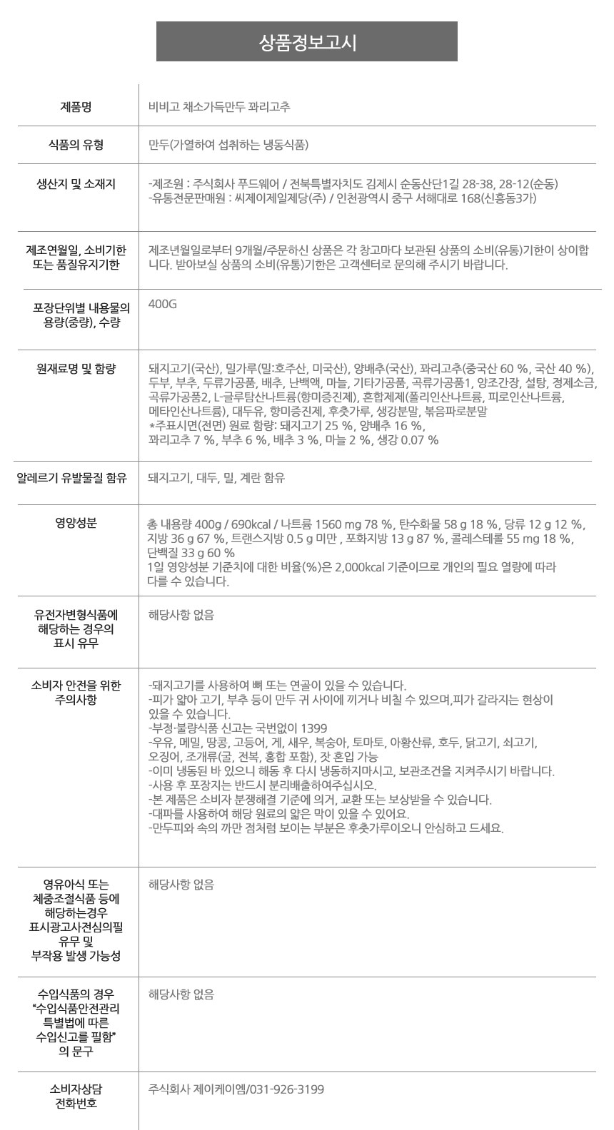 | 소비자상담 관련 전화번호 | 031-926-3199 |